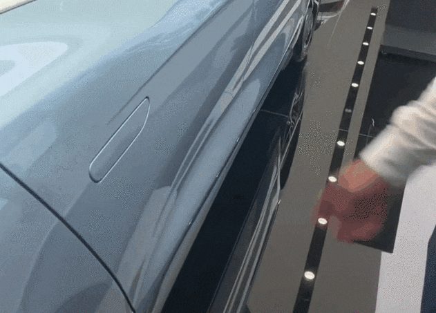 小米SU7 Ultra采用半躲藏式门把手设想,外不雅制型跟保守向后拉的门把手雷同,出格之处是采用“电子触发”,只需要通过按压后端的微动开关向域控发送电信号即可打开车门。