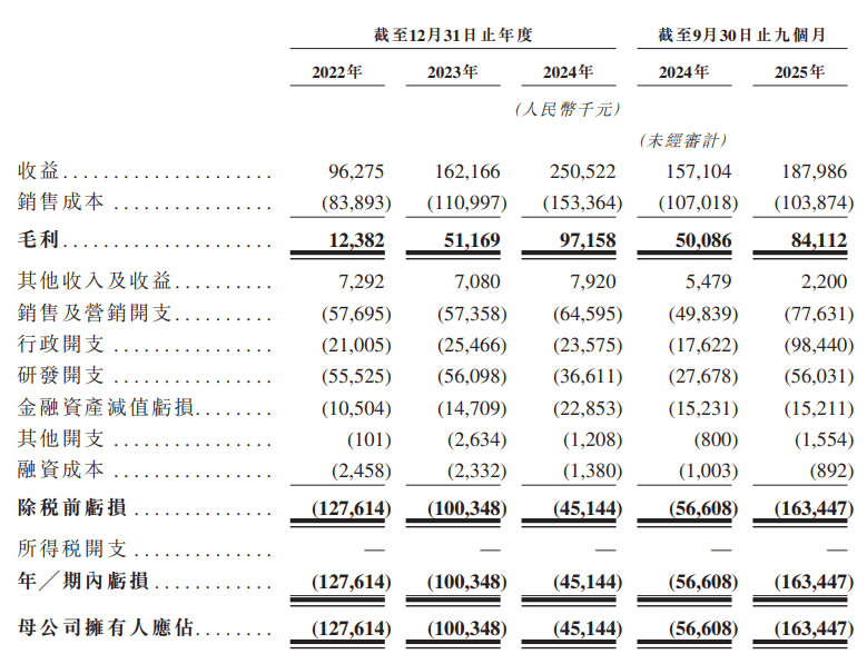 IPO前,斯坦德机械人董事长、CEO王永锟间接持有公司12。80%股份,通过股份激励平台斯坦德从动化节制14。30%股份,其分歧步履人施行董事兼首席手艺官李洪祥间接持股3。80%。同时,王永锟通过投票权代办署理放置,行使盛银璟投资等从体的投票权,最终节制公司约35。46%投票权。此外,无锡国资旗下的无锡市梁溪科创财产投资基金持有斯坦德机械人14。29%股份,系第一大外部股东;小米旗下小米智制基金持股8。40%。值得关心的是,2024年公司部门高管薪酬有所调整。王永锟年薪约120万元,较上年微降;李洪祥年薪59。7万元,较上年降薪约26%。虽然背靠多家本钱,但做为具身智能赛道的一员,斯坦德机械人近年来的财政表示呈现高速增加取持续吃亏并存的场合排场。2022年、2023年、2024年斯坦德机械人营收别离为9627。5万元、1。62亿元、2。5亿元,呈现逐年增加态势,年内吃亏也正在收窄,别离为1。28亿元、1亿元、4514。4万元。2025年前9个月,斯坦德机械人实现营收1。88亿元,同比增加19。7%;期内吃亏1。63亿元,2024年同期为5560。8万元。能够看到,截至2025年9月30日,斯坦德机械人还未脱节吃亏场合排场。